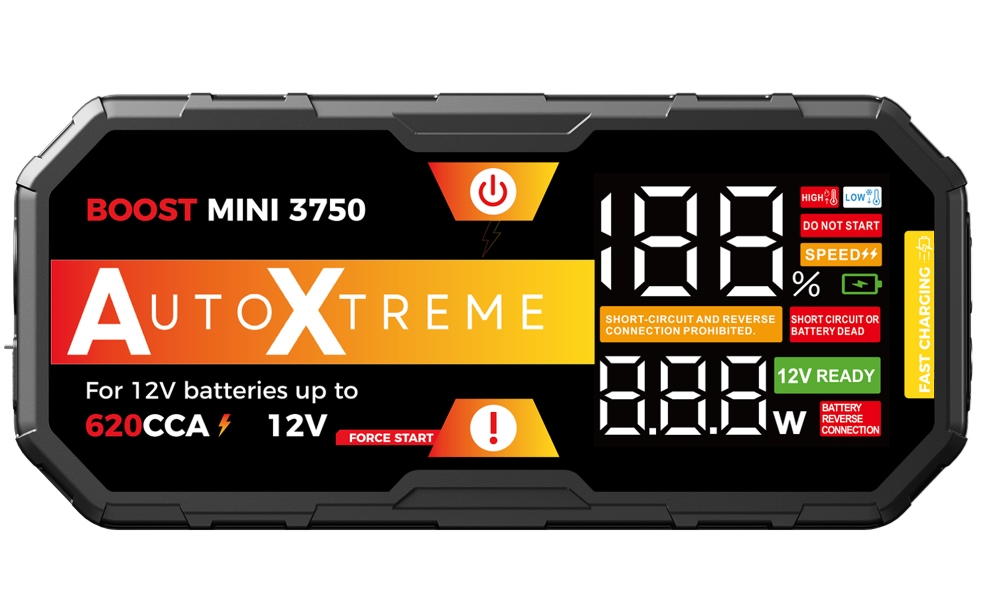 LED-display, Forcestart, Interne beveiliging, 15.5W powerbank, Zaklamp-functie