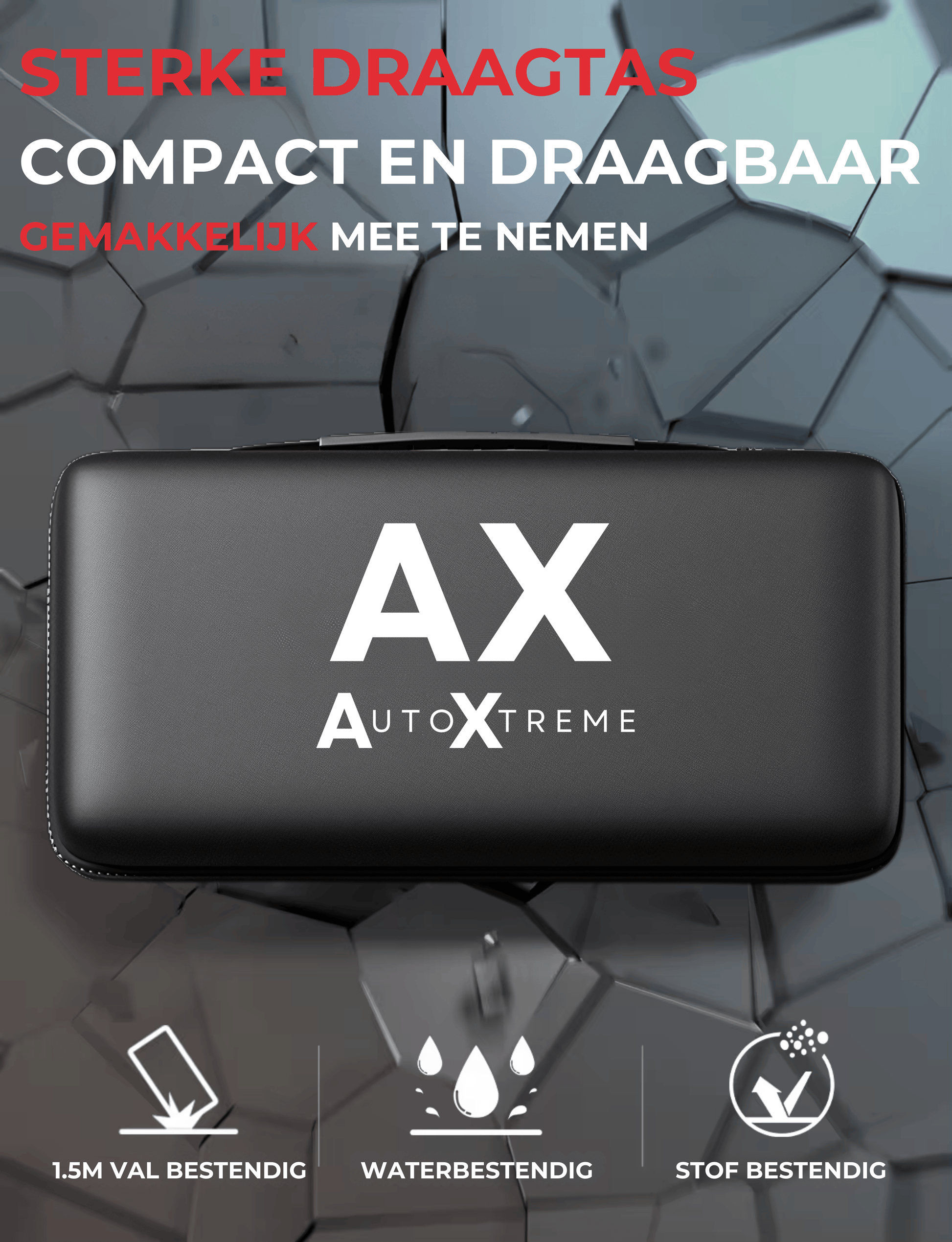 Ga zorgeloos op pad! Wees verzekerd van tot wel 80 keer starten binnen no-time. Maak kennis met de AutoXtreme F40-8250A jump starter auto. Met een indrukwekkend vermogen van 8.250 Ampère en een 12-volt aansluiting start u uw voertuig moeiteloos meerdere keren. Daarnaast kunt u hem gebruiken als powerbank en zaklamp met verschillende functies. Binnen enkele seconden bent u weer veilig op weg en dat allemaal in een compact en draagbaar formaat!